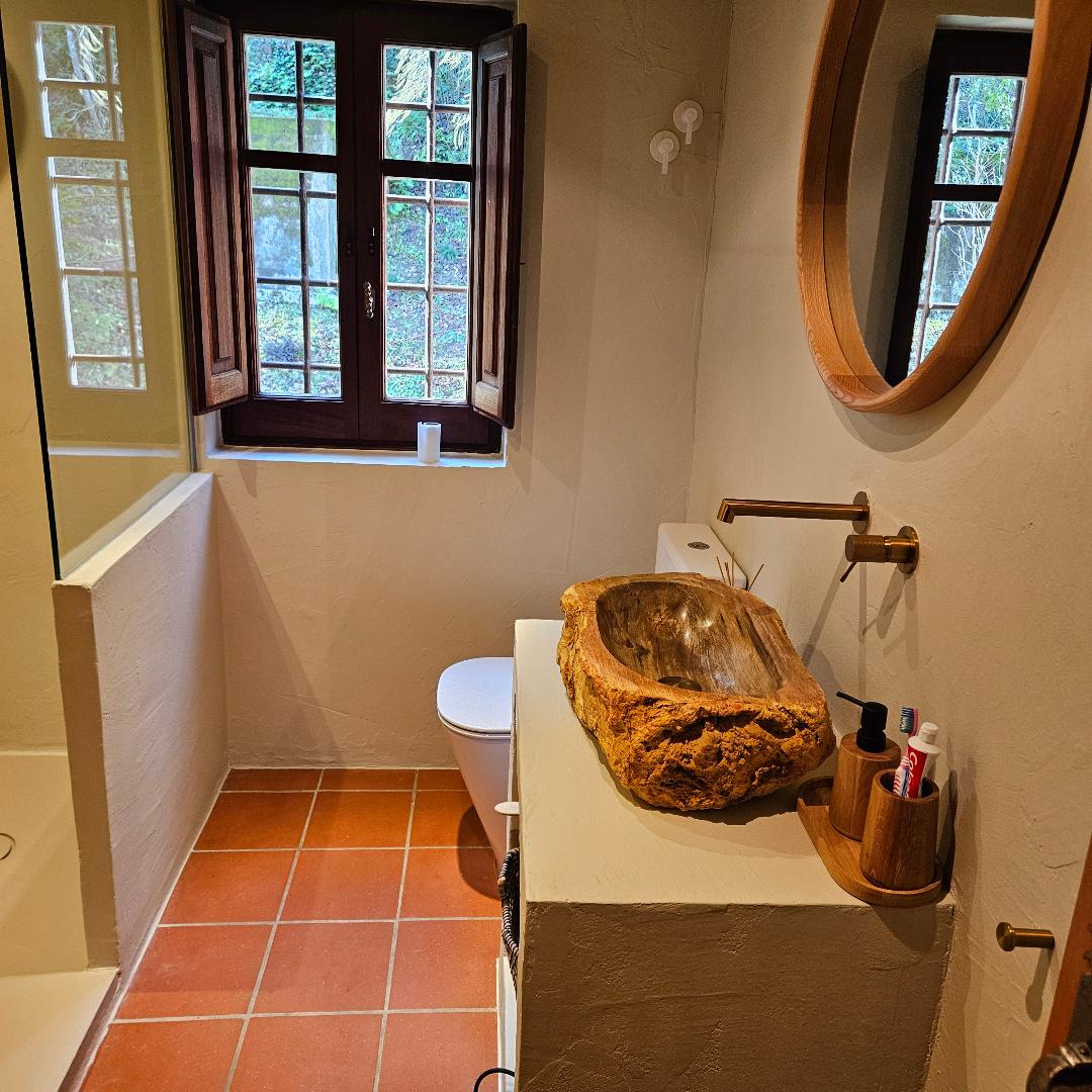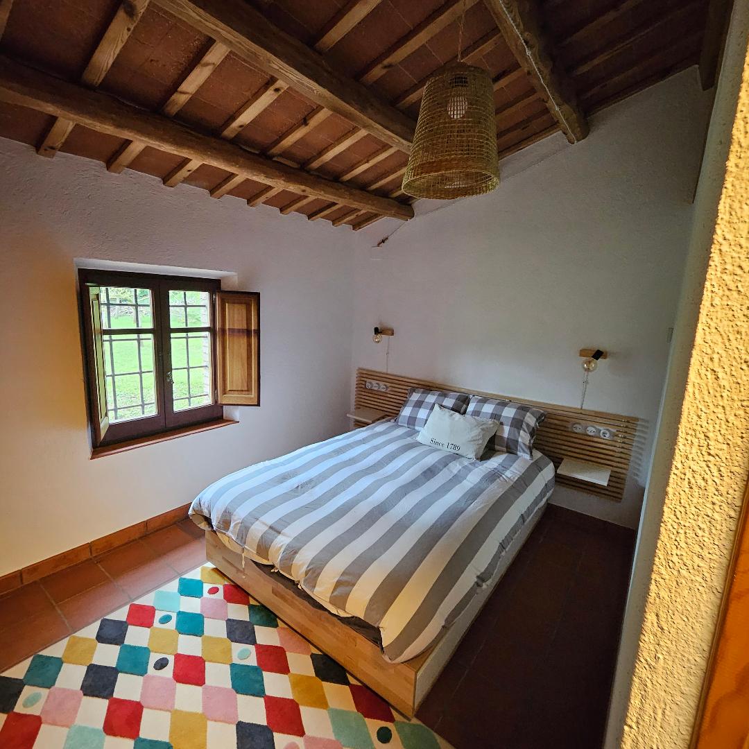 A ViuMasia hem realitzat la reforma d’un dormitori en masia, aprofitant les característiques originals de l’espai per reconvertir-lo en una suite funcional i confortable.